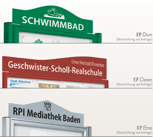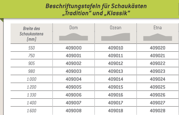 Beschriftungstafeln für Schaukästen "TRADITION" und "KLASSIK"