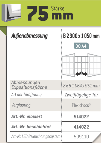 Schaukasten "1000" 75 mm, 30 x A4