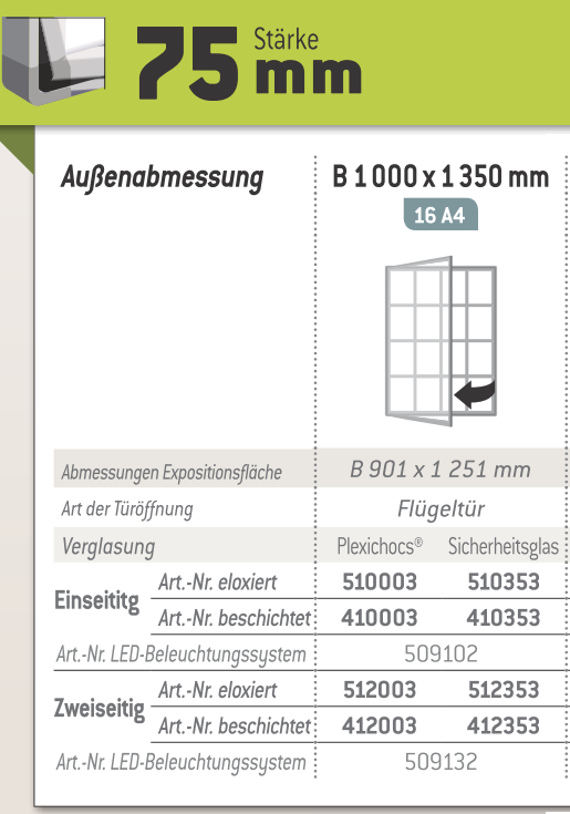 Schaukasten "2000" 75 mm, 16 x A4