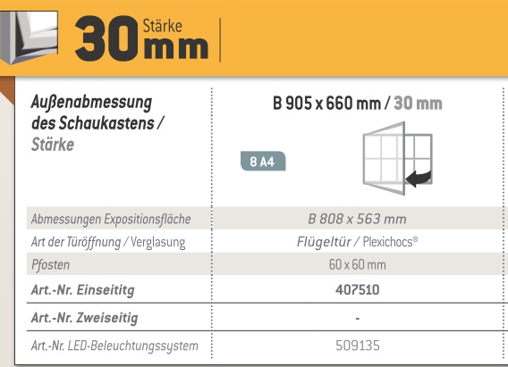 Schaukasten Aluminium & Holz 30 mm, 8 x A4