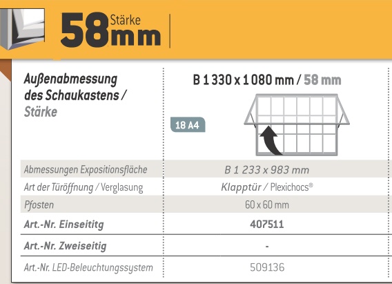 Schaukasten Aluminium & Holz 58 mm, 18 x A4